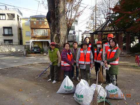 12月3日朝の8時より「天沼東公園」と「天沼地蔵前公園」の清掃(主に公園周辺の落ち葉清掃)をおこなった。好天に恵まれみるみる綺麗になっていく作業が短時間で終わった。