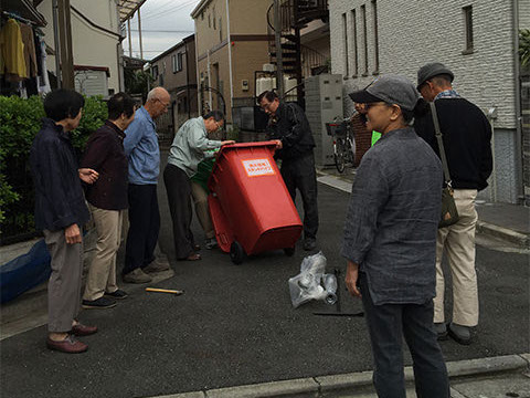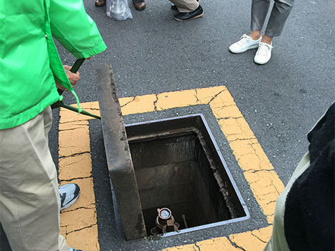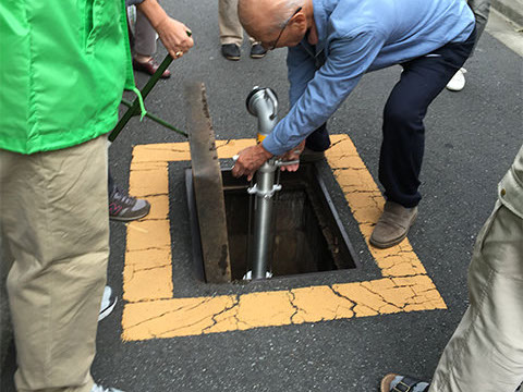 天沼尚和会では現在(平成27年11月)5台のスタンドパイプを町内会に設置しています。消火栓のある近所の方にお願いして設置してますが、今回2丁目に設置した1カ所で訓練をしました。近所の方に集まっもらい動作確認をして実際に稼働できるか試しました。