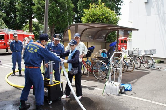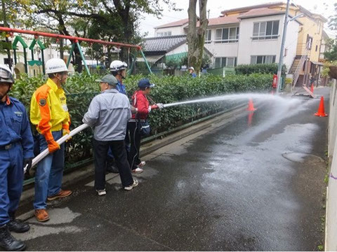 荻窪消防署天沼出張所、消防団第一分団の協力と㈱テツゲンのご厚意によりテツゲン社宅構内において開催いたしました。