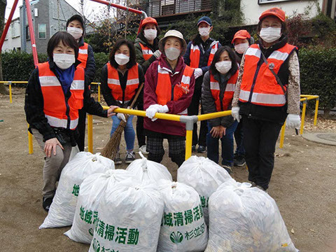 町会より10名が参加、天沼東公園、三角公園、地蔵前公園周辺で、落ち葉掃きをしました。