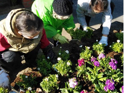 年3回 地蔵前公園にある二ヵ所の花壇の植栽をして くださっています。