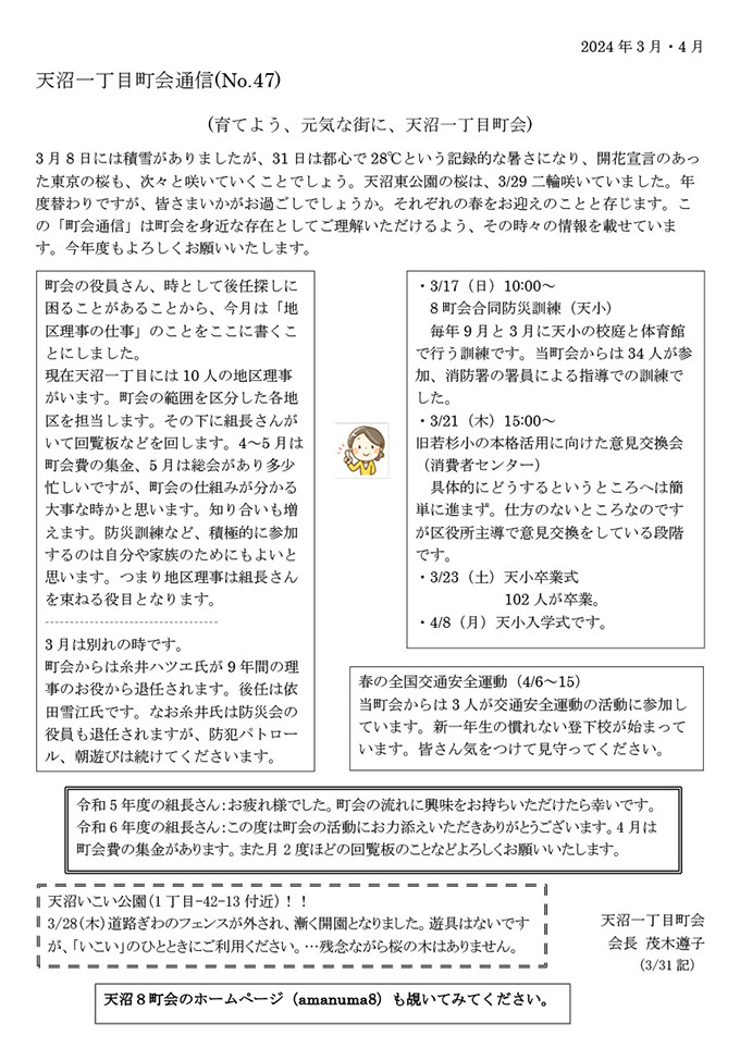 天沼8町会とは / 連合会長より / 事業報告 / パトロール / 回覧版 / 防災マップ