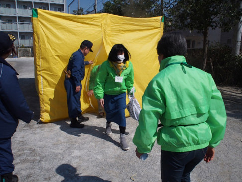 平成30年10月14日(日)、保育室若杉内の震災救援所での震災救援所をどのように活用するかを体験する訓練に近隣町会の皆さんと共に参加しました。