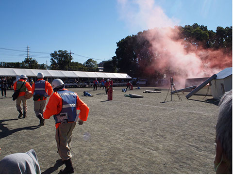 令和3年11月13日(土)、杉並区和田堀公園第一競技場において開催された本年度の杉並区総合震災訓練に町会役員が参加しました。