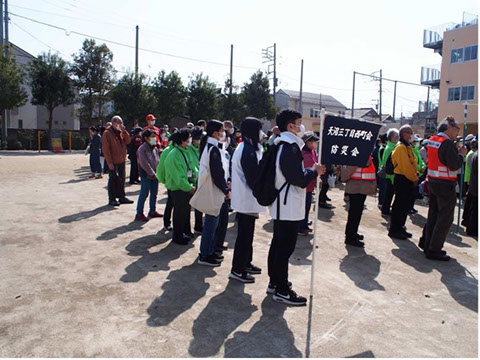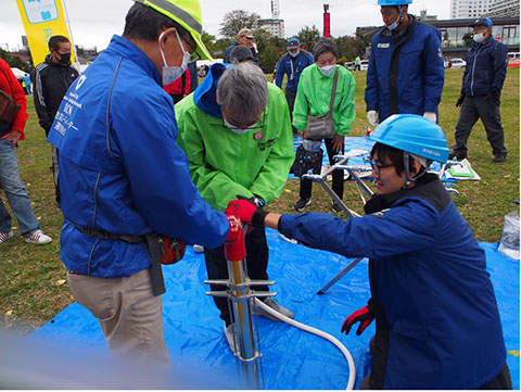 令和5年11月4日(土)、杉並区下高井戸おおぞら公園において開催された本年度の杉並区総合震災訓練に町会役員が参加しました。