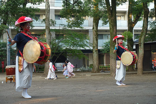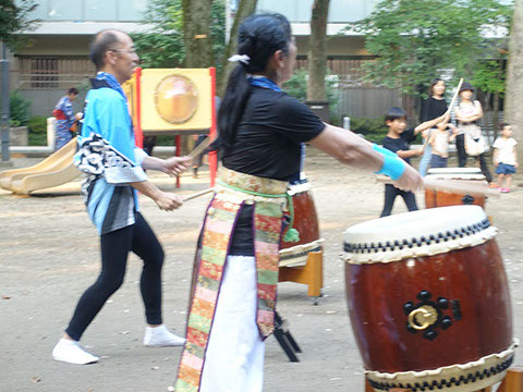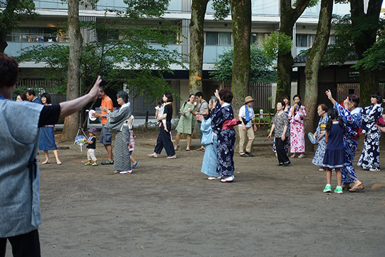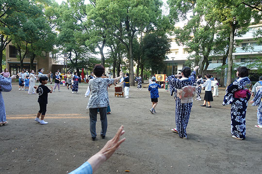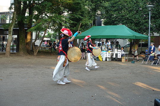 去る8月4、5日午後5時から天沼弁天池公園にて天沼三丁目あかるい町会主催、第二回 『天沼弁天池盆おどり」が開催されました。昨年同様、勇舞会の方々による民族舞踊、田楽太鼓の披露の後、参加者全員が大きな輪になって 杉並音頭、東京音頭、サザエさん等を踊りました。