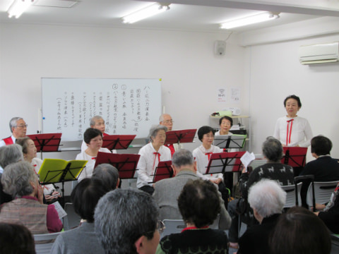 あんしん協力員の斉藤さんによる1年間の活動報告やピアノ奏者の池田さんによるキーボード演奏と合唱、