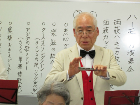 青い山脈をハーモニカ演奏での全員合唱から始まり、楽器の紹介やクリスマスソングメドレーやソロ演奏など盛り沢山の内容となって大満足の演奏となりました。
