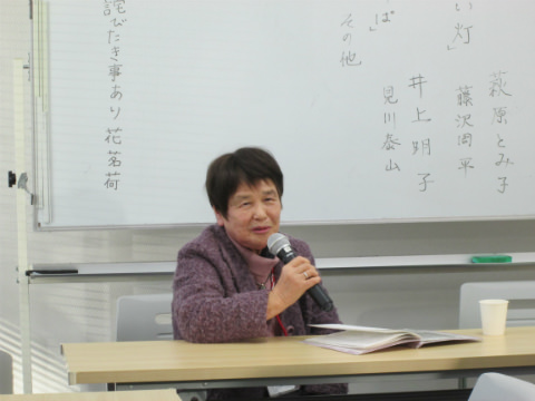 「朗読」では「七種の会」の方々に「彼女のこんだて帖」「夫婦の絆」「ラブミーテンダー」の3篇を朗読して頂きました。みなさん読み手として個々に異なる朗読の世界をお持ちで参加者一同魅了されました。