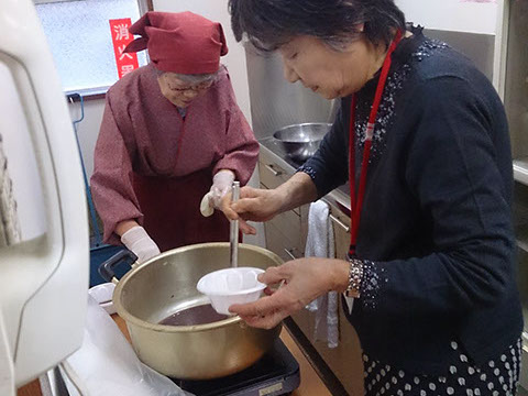 初笑いの後は榛名屋さん特性の搗きたてお餅入りの美味しいお汁粉をいただきながら新春を祝い合いました。