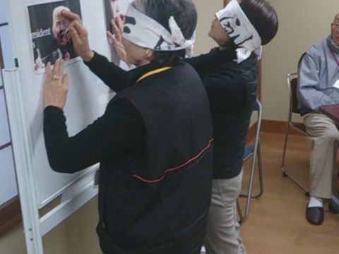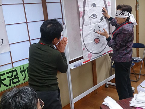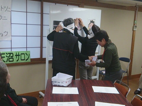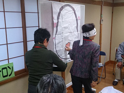 天沼サロンは今年も恒例の手作り「福笑いゲーム」で始まりました。