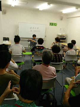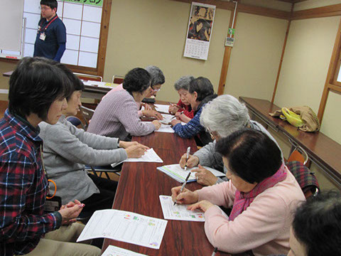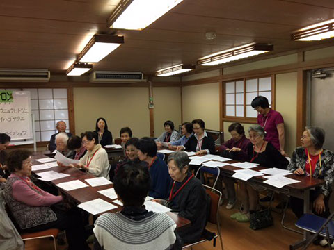 そののち、万が一の避難生活や自宅避難に備え、その予防のために大きな古時計、森のくまさんを歌いながら楽しくシンギング・ロコトレを行いました。