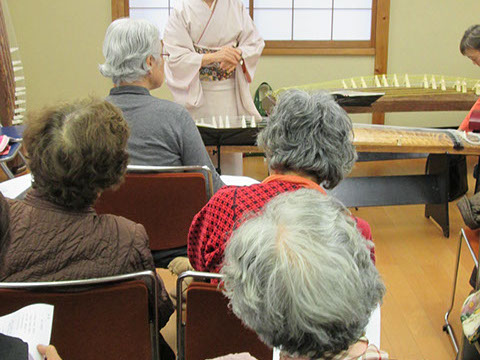 お琴の鑑賞ののち、亜麻色の髪の乙女、島唄、涙そうそう等おなじみの曲に合わせてみんなで合唱し楽しいひとときを過ごしました。