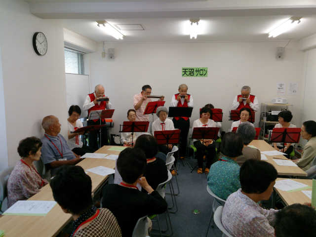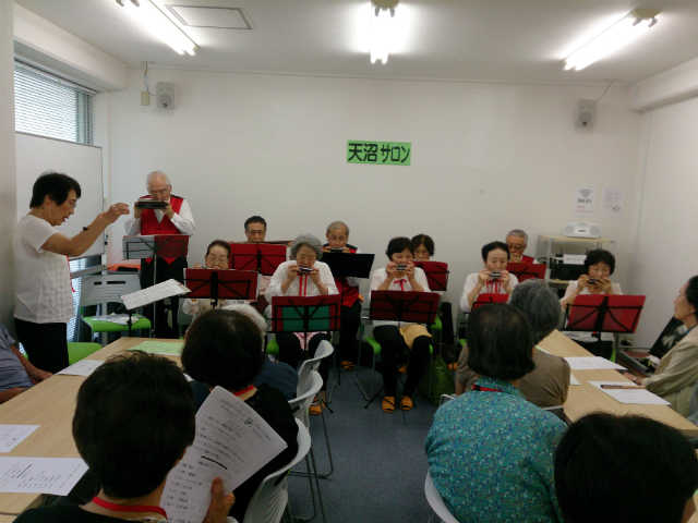 ○9月27日は、「ハーモニカ演奏会」ということで、西荻ハーモニカ教室と西荻カルテットの方々、総勢12名の方に披露していただきました。