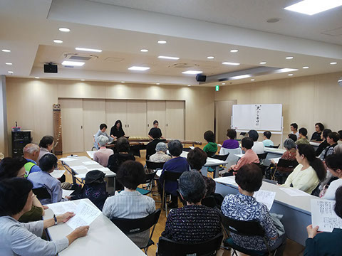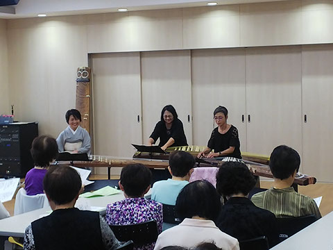 テーマは、お琴の演奏で、三名の方が歌謡曲も含め様々な曲を披露してくださいました。最後には、お琴の調べを聞きながら、詩の朗読を行い新たな試みで秋の芸術を楽しみました。