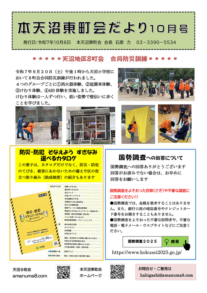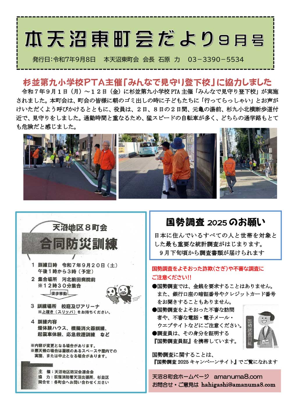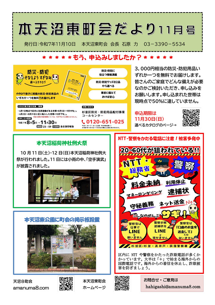 天沼8町会とは / 連合会長より / 事業報告 / パトロール / 回覧版 / 防災マップ