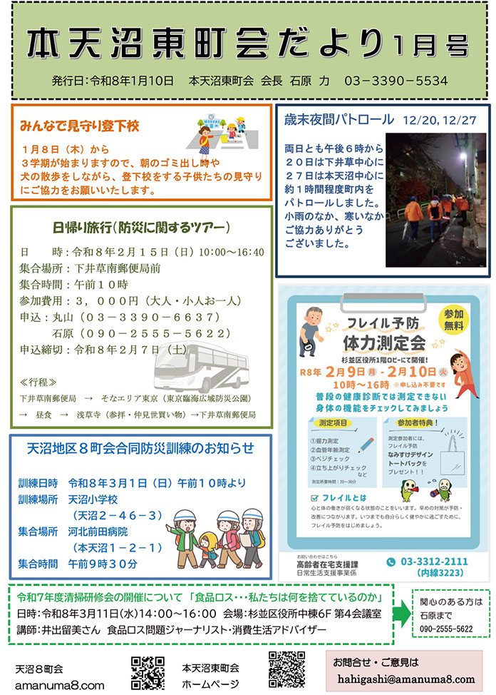 天沼8町会とは / 連合会長より / 事業報告 / パトロール / 回覧版 / 防災マップ