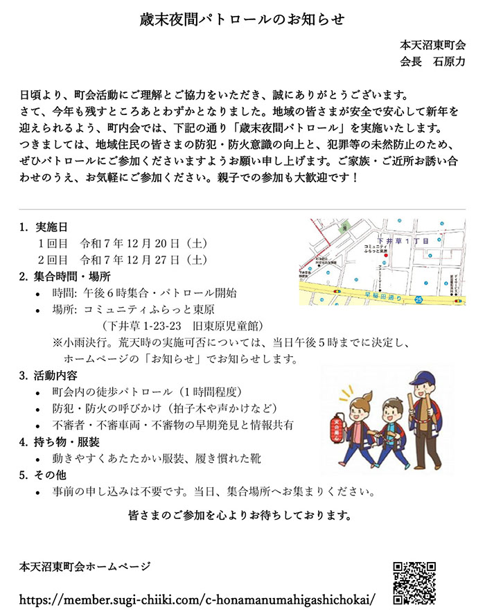 天沼8町会とは / 連合会長より / 事業報告 / パトロール / 回覧版 / 防災マップ
