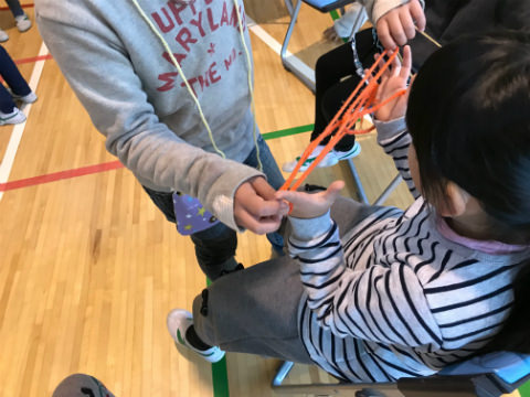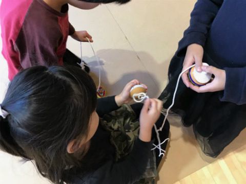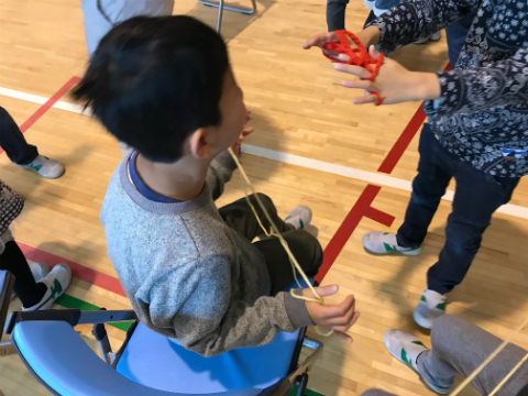 12月9日、1年生の伝承あそびに天沼の町会から17名が参加して一緒に楽しみました。今では見ることやすることも少なくなった昔なじみのあそびですが身体をイッパイ使うアナログなあそびに夢中でした。町会の方も童心に帰ったようです。
