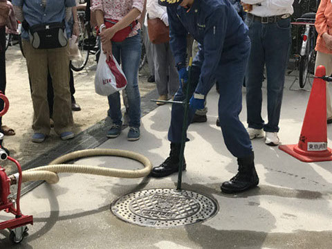 その他D級ポンプを消火栓につないだ放水訓練、震度7の起震体験、煙体験、AEDの操作訓練など
