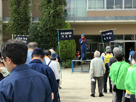 9月24日10時から天沼小学校で天沼8町会合同防災訓練を行いました。
