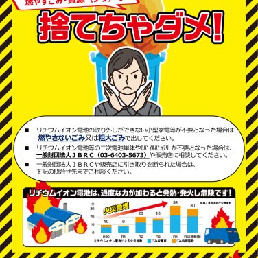 2025年 「リチウムイオン電池は燃やすごみ・資源(プラ)で捨てちゃダメ!」不要となったリチウムイオン電池の捨て方についてのお知らせ
