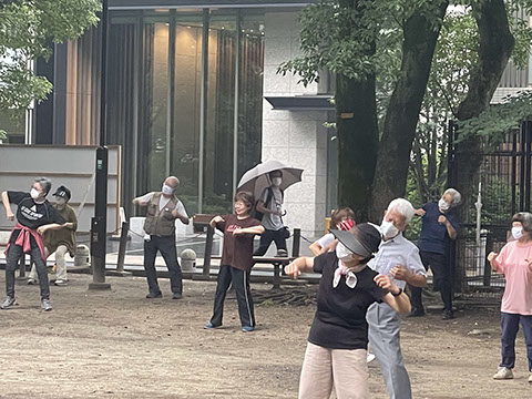 ラジオ体操も皆さん自分の場所を決めながら今日も元気にカラダを動かしています。
