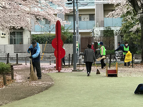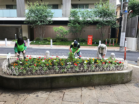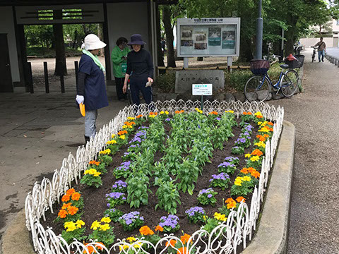 天沼尚和会花咲かせ隊の皆さんは年3回、花の植え替えとほぼ毎日の水やりとメンテナンスを行なっています。そのため植え替えの時でも花は元気なので公園に来る方にお配りしています。今回も持ち帰られた95歳を超えた方がスマホで植え替えた写真を見せてくれました。