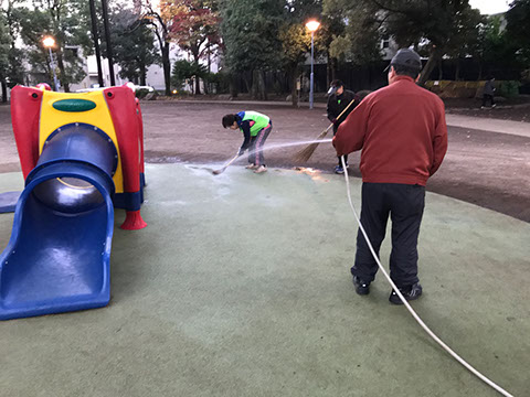 毎朝、体操のある時は掃除をしています。特に乳幼児の遊ぶエリアはきれいにしています。