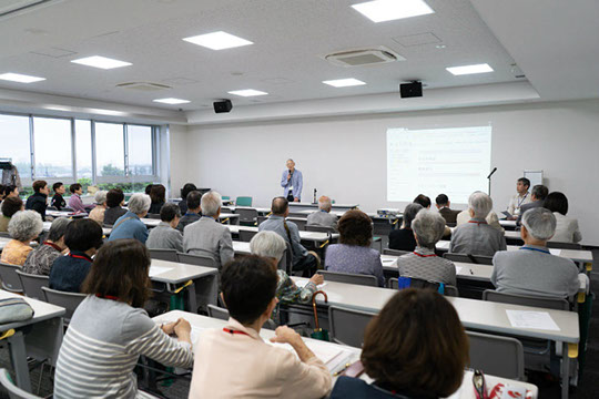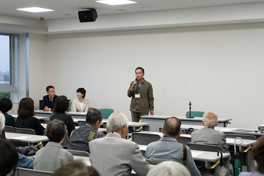 総会で質問のあった消化器のハリアーとスタンドパイプの効用について説明をしていただきました。その他「東京くらし防災」のアプリを立ち上げながら視覚障害者でも利用できること、JR荻窪駅にホーム扉が設置されることが検討されていること、都営アパートの集会室「こども食堂」も都の助成金が使える可能生があることお話しいただきました。