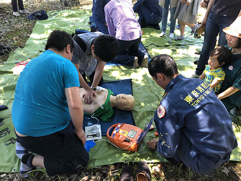 他はAED、消火器、起震車体験、煙体験、119番への伝え方でした。