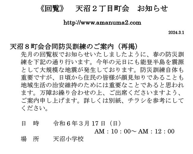 町会では安心、安全の為、今後もスタンドパイプ等の防災設備の設置を充実させていく予定です。