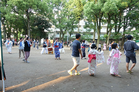 去る8月4、5日午後5時から天沼弁天池公園にて天沼三丁目あかるい町会主催、第二回 『天沼弁天池盆おどり」が開催されました。昨年同様、勇舞会の方々による民族舞踊、田楽太鼓の披露の後、参加者全員が大きな輪になって 杉並音頭、東京音頭、サザエさん等を踊りました。