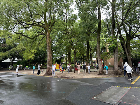 久しぶりの雨の中、お盆の中日ですが多くの方が参加されました。普段の半分くらいの人数ですが8月に入って始めて涼しい時間のラジオ体操でした。