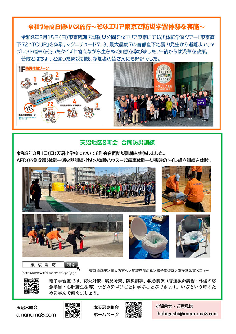 天沼8町会とは / 連合会長より / 事業報告 / パトロール / 回覧版 / 防災マップ