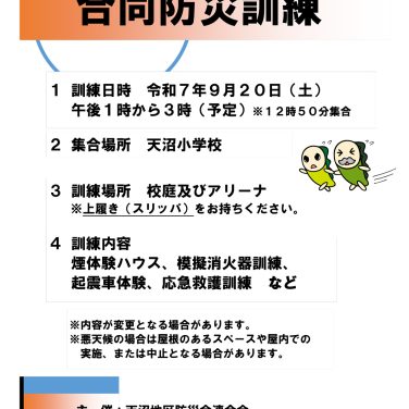「天沼地区8町会合同防災訓練」9月20日(土)に行われる防災訓練のお知らせです