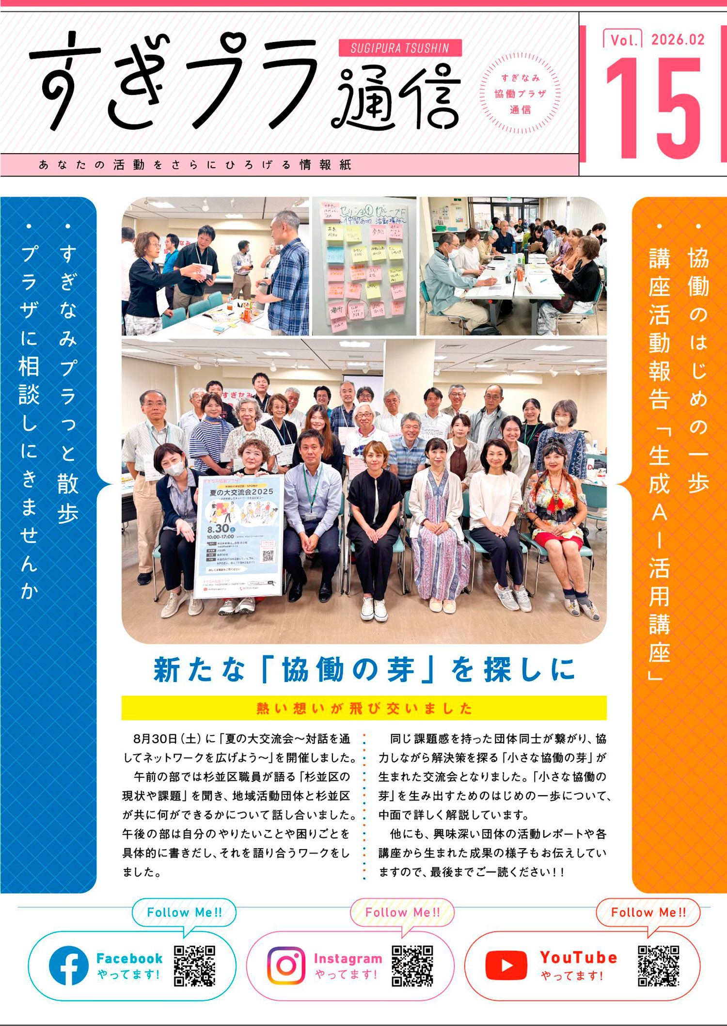 「すぎプラ通信Vol.15」講座活動報告、講座・イベントスケジュールなど掲載