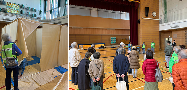 杉並区内で震度5強以上の地震が発生した場合、すべての区立小学校・中学校に自宅での生活ができない状況になった避難者をしばらくの期間、受け入れる震災救援所が立ち上がります。最新の耐震性・耐火性を備えた天沼小学校震災救援所では、区職員、学校教職員、警察署員、消防署員、天沼小PTA会員、民生・児童委員、各町会員等から約100名の震災救援所運営連絡会委員として任命されており、それぞれが総務・情報部、施設管理部、物資等配給部、救護・支援部の4つの部門を分担し、大震災の際の地域住民の安全・安心を確保するため日々努力を重ねています。
